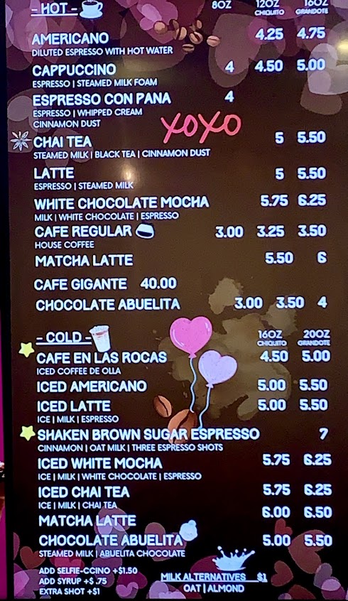 The Con Azucar Cafe Restaurant menu offers a vibrant mix of authentic Mexican pastries, handcrafted espresso drinks, and light café-style meals in the heart of San Jose, California. Known for its colorful and welcoming atmosphere, this café blends traditional Mexican flavors with modern coffee culture, serving everything from sweet pan dulce to rich specialty lattes. Whether you're stopping by for a quick morning coffee or a relaxing afternoon treat, the menu provides a unique and flavorful experience. Explore the Con Azucar Cafe Restaurant menu to enjoy freshly prepared delights in a cozy and artistic setting.
